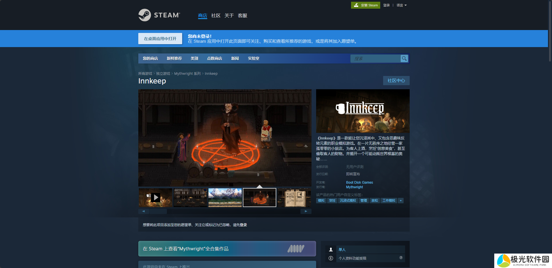 Steam平台需要先安装Steam平台,之后注册一个账号登录,然后搜索“Innkeep”进入商店购买页面。