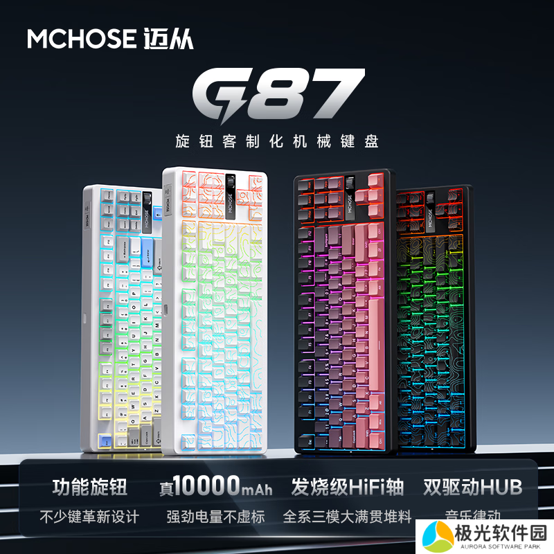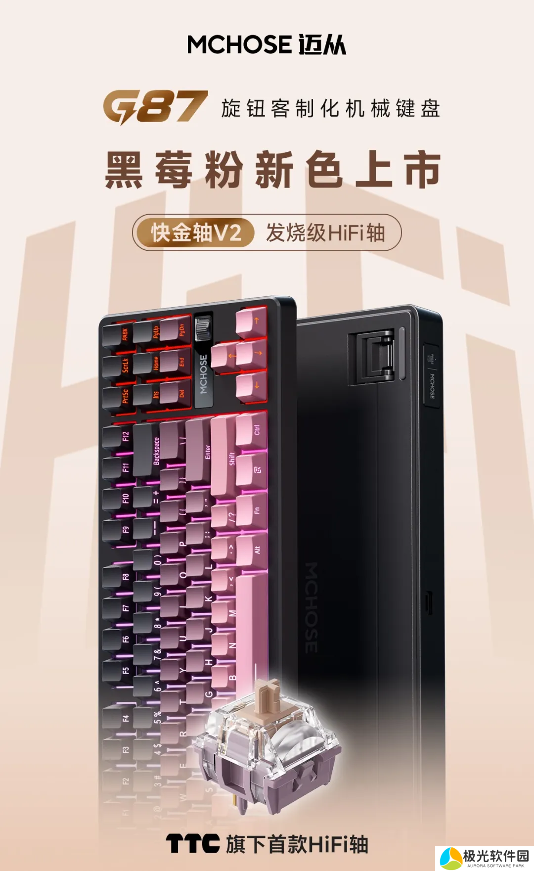 本站 1 月 2 日消息,迈从 G87 机械键盘已于 12 月 9 日开售,该款键盘快金轴 V2 黑莓粉新色官宣上市,采用 Gasket 结构 + 侧刻设计,售价 269 元。