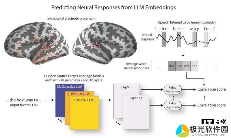 米施勒及其团队的主要目标,是探究最新一代的 LLM 是否依然表现出与人类大脑相似的特征。研究人员对 12 个不同的开源 LLM 进行了分析,这些模型在架构和参数数量上几乎一致。同时,他们也通过在神经外科患者的脑部植入电极记录其听到语言时的大脑反应。