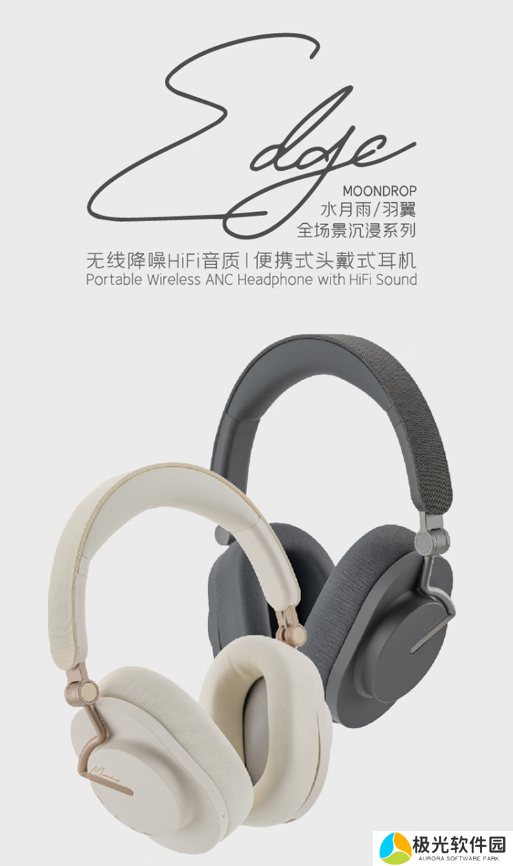 水月雨「羽翼 Edge」头戴式耳机采用铝合金伸缩折叠转轴设计,搭载国产高能效智能芯片(内置 RISC-V 和 NPU 神经处理单元),支持蓝牙 5.4 无线连接,提供自然音色解决方案调音。