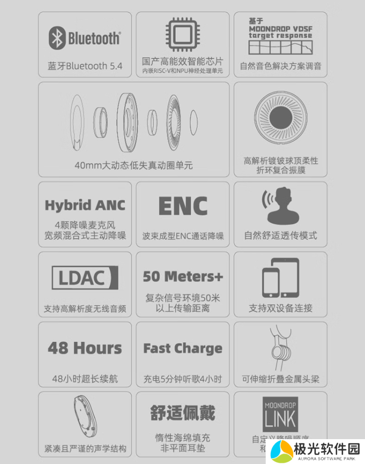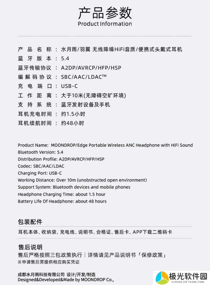 本站附水月雨「羽翼 Edge」头戴式耳机产品参数如下: