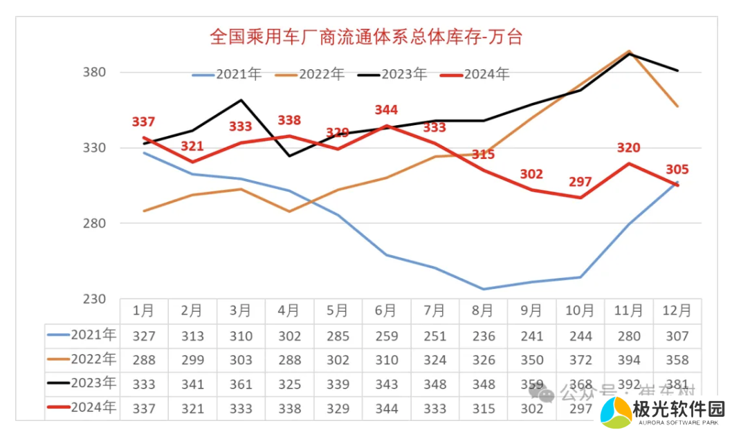 本站 1 月 25 日消息,据乘联分会崔东树官方公众号,2024 年 12 月月末全国乘用车库存 305 万台,较上月下降 15 万台,较 2023 年 12 月下降 76 万台,较 2022 年 12 月低 53 万台。