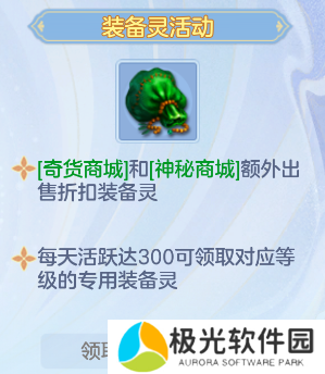 ①每日达到300活跃可领取一个装备灵;