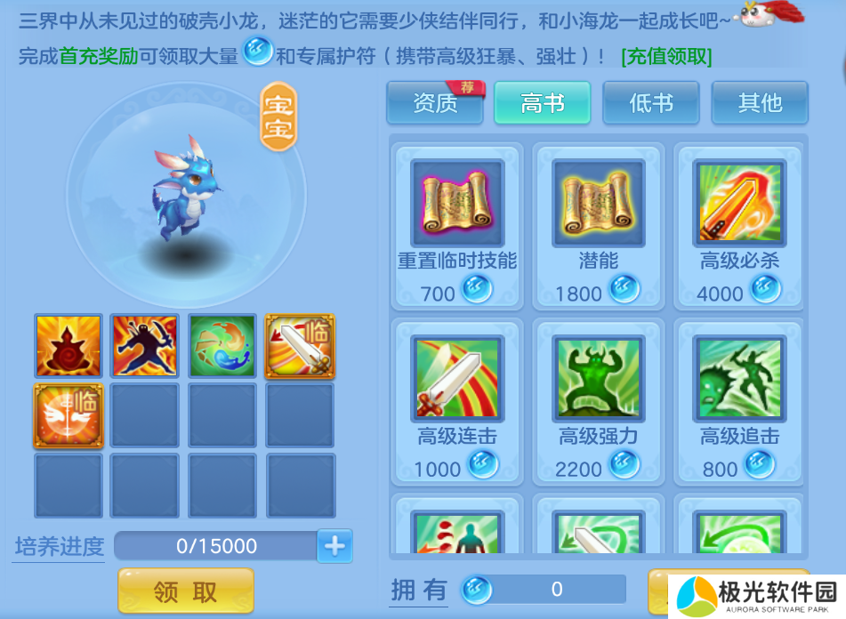 服务器达到35级且角色达到35级即可领取专属宠“小海龙”;