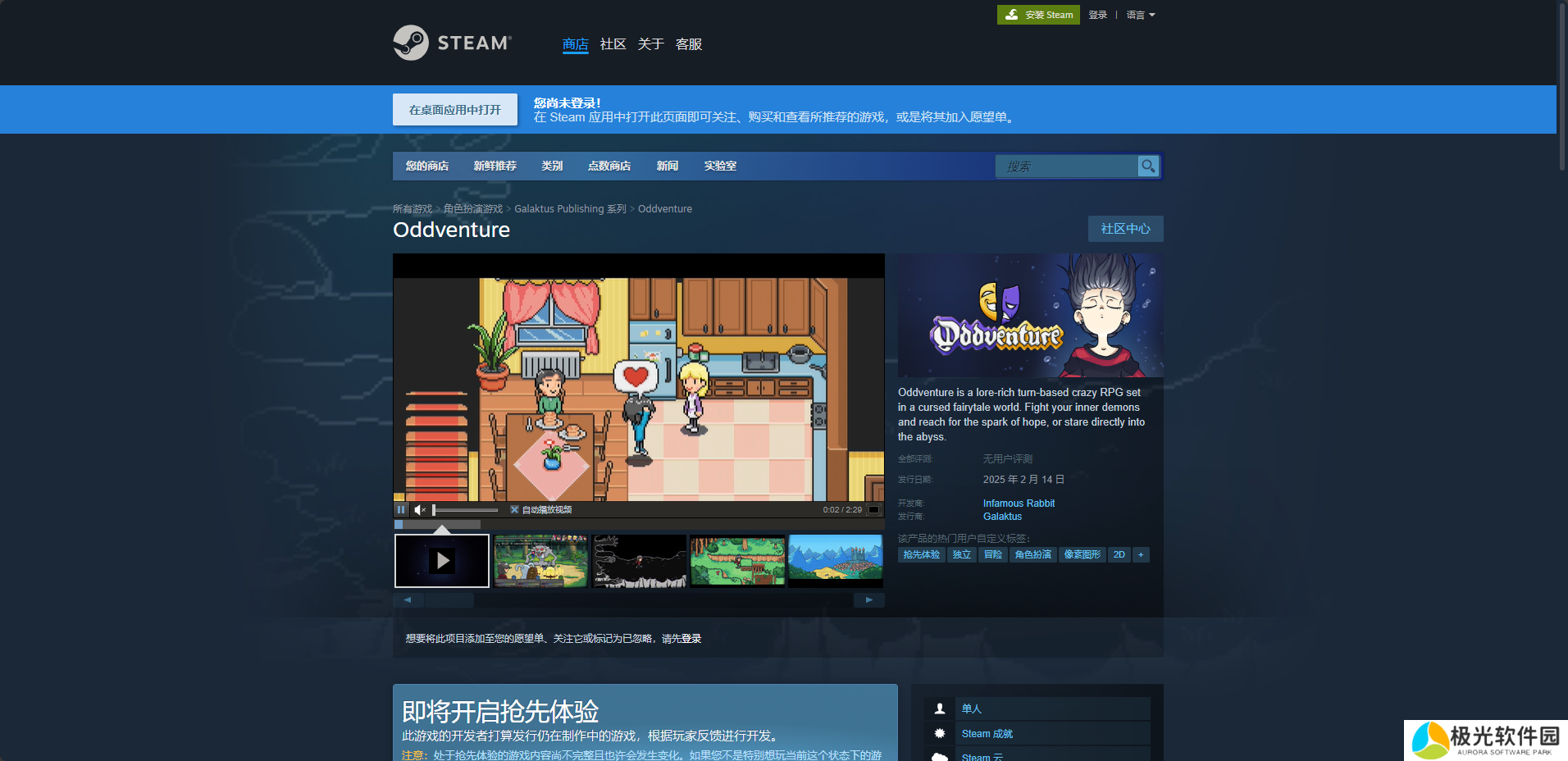 Steam平台需要先安装Steam平台,之后注册一个账号登录,然后搜索“Oddventure”进入商店购买页面。