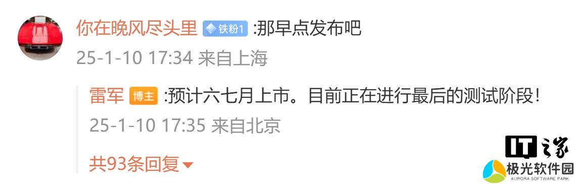 小米创办人、董事长兼 CEO 雷军今日在微博表示,小米 YU7预计六七月上市,并透露新车目前正在进行最后的测试阶段。