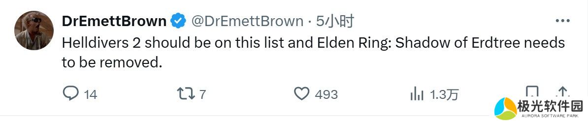《绝地潜兵2》应该上榜,法环DLC应该移除