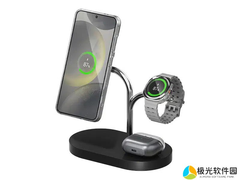 这款充电器可以同时为支持 Qi2 的手机、Galaxy Watch 和 Galaxy Buds(或其他无线耳机)或 Galaxy Ring 充电。