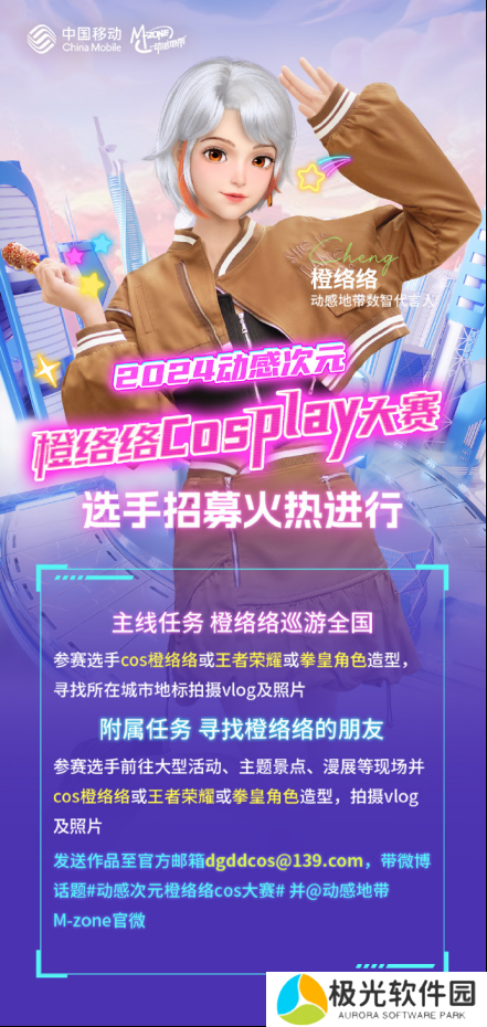 同时,2024动感地带5G校园先锋赛河北·石家庄赛区比赛期间,还有其他精彩活动同步进行,如2024动感次元橙络络cosplay大赛等,为电竞盛宴增色不少。参与cosplay大赛的规则如下:参赛者需cos橙络络或王者荣耀角色或拳皇形象,前往所在城市寻找城市地标拍摄视频/照片,发送作品至官方邮箱,并带微博话题#动感地带橙络络cos大赛#@动感地带M-zone官微,即为参赛成功。全国总决赛冠军将成为橙络络官方coser,获得万元大奖。