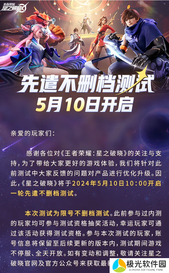 《星之破晓》在2024年5月10日10:00开启一轮先遣不删档测试。
