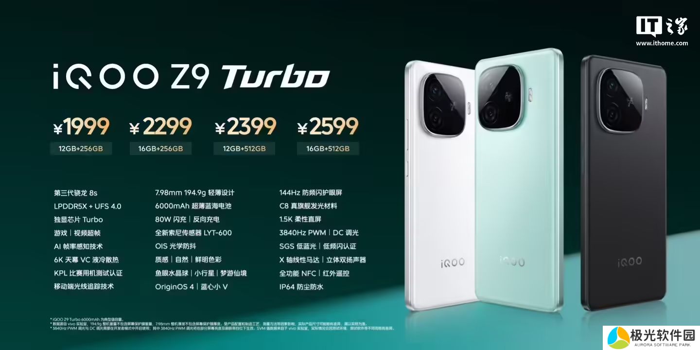 据本站此前报道,iQOO Z9 Turbo于今年 4 月发售,搭载高通骁龙 8s Gen 3 处理器,内置 6000mAh 电池,支持 80W 有线快充,售价 1999 元起。