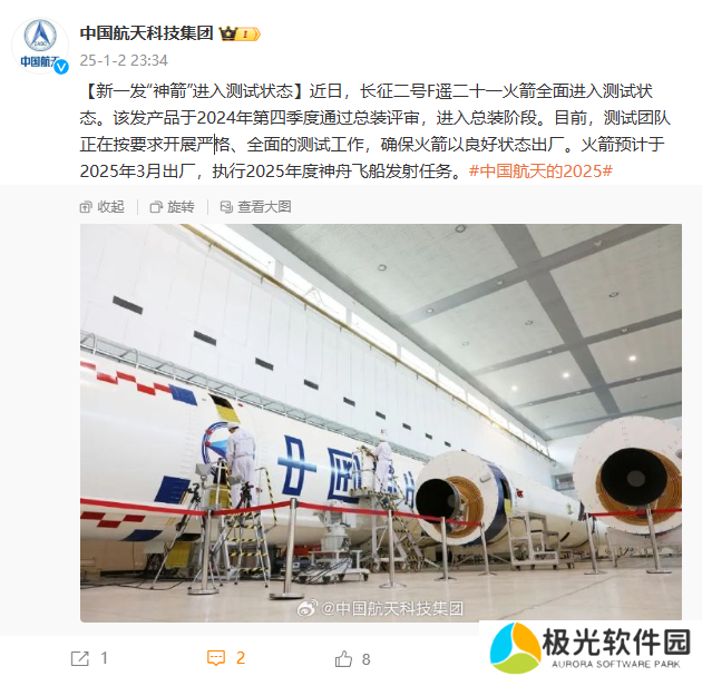 本站 1 月 2 日消息,中国航天科技集团刚刚宣布,长征二号 F 遥二十一火箭全面进入测试状态。这枚火箭预计于 2025 年 3 月出厂,执行 2025 年度神舟飞船发射任务。