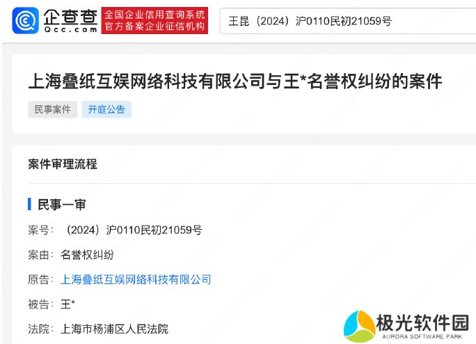 据企查查上海叠纸互娱网络科技有限公司新增一条开庭公告信息,被告为王昆(派克特本名)。预计2025年1月14日下午14:00开庭。