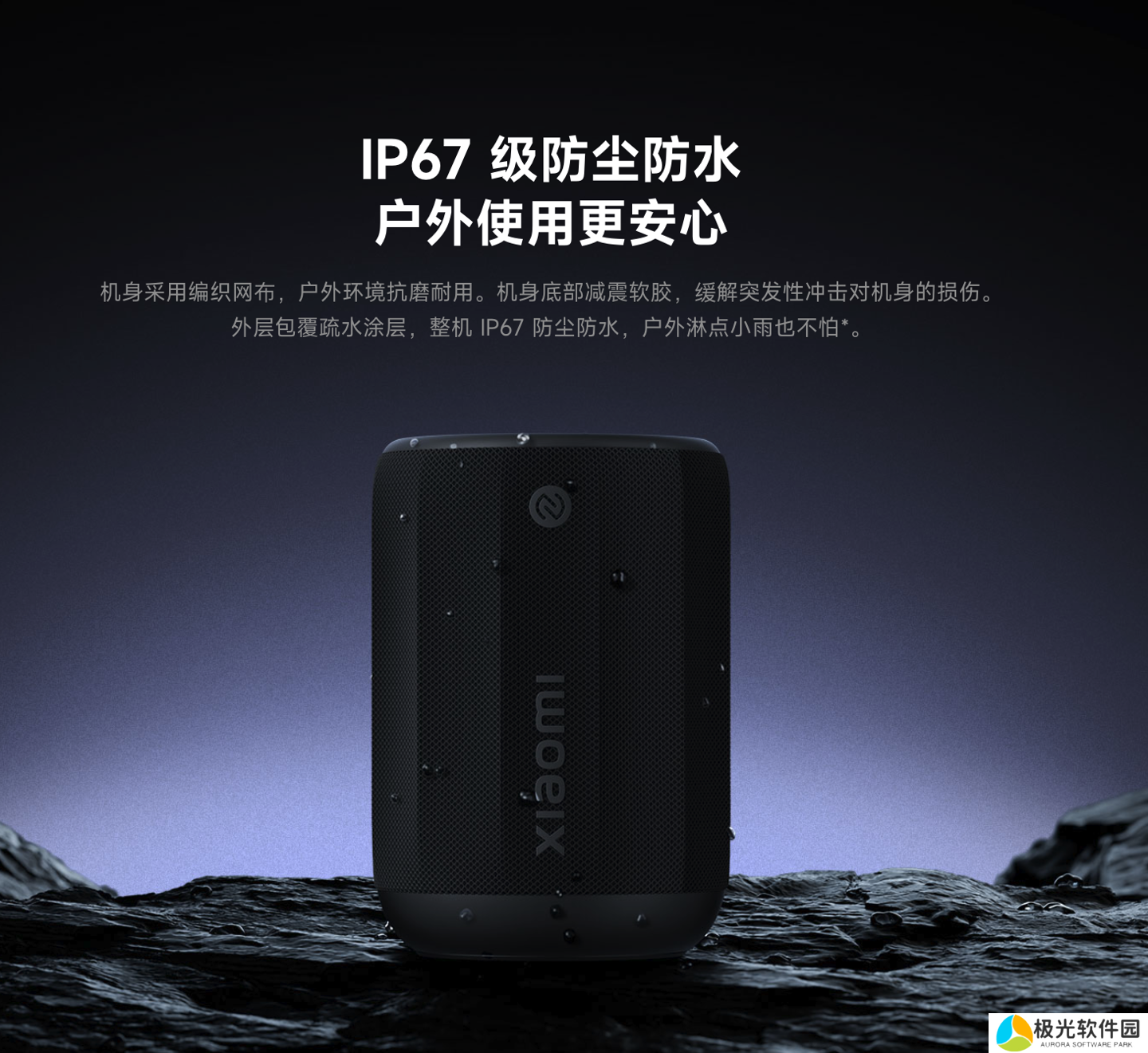 小米蓝牙音箱 Mini机身采用编织网布,机身底部采用防撞软胶,可缓解突发性冲击对机身的损伤;外层包覆疏水涂层,支持 IP67 防尘防水。