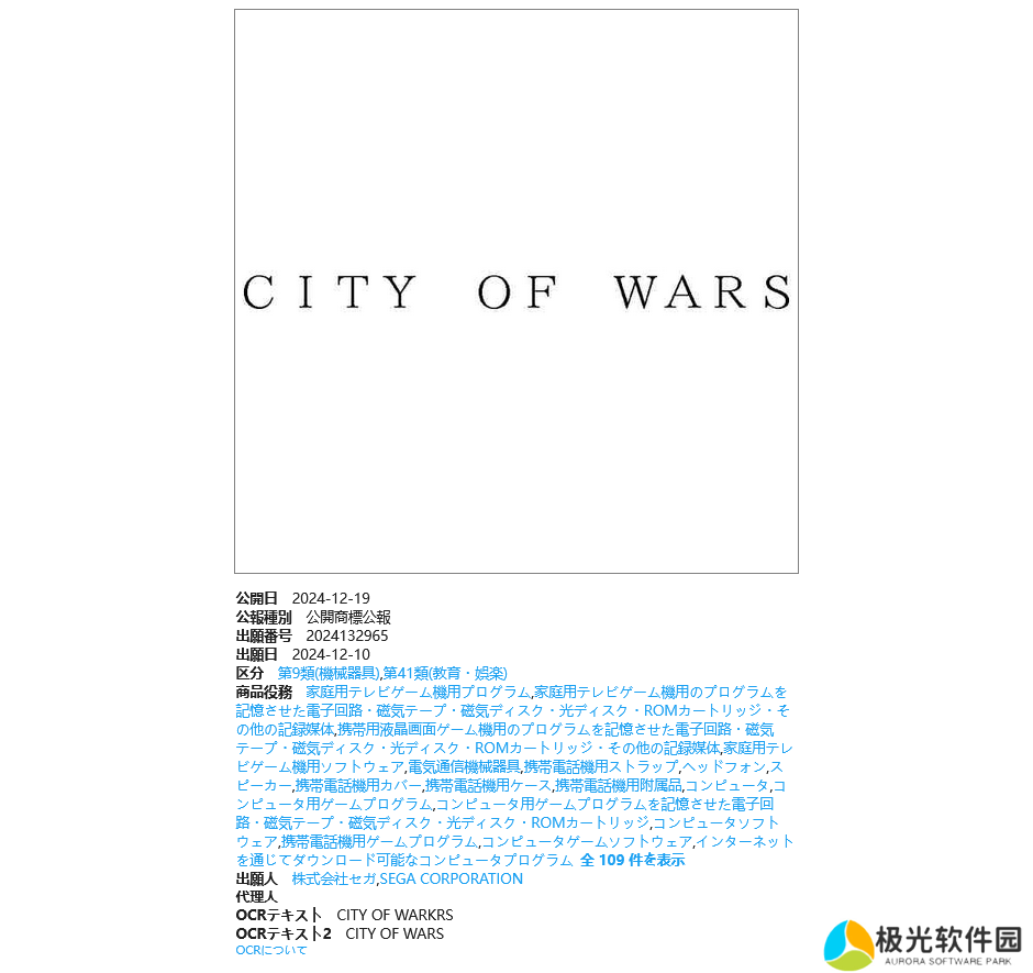 而一同申请的第三个商标则是“CITYOF WARS”,这并没有出现在预告当中,但根据分析很有可能也是与这款作品相关,可能是游戏的副标题。