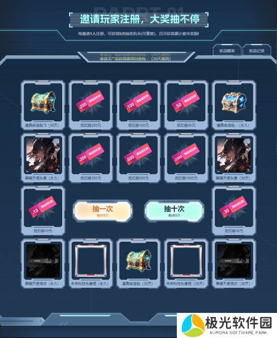 另外每成功邀请一名玩家可获取5次抽奖机会,抽奖可获取更多超值道具哦。