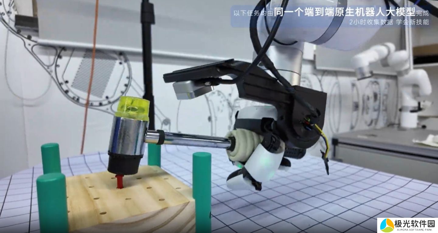 本站获悉,模型不需要任何预编程技能,完全基于其泛化和自适应力,能在不到 2 小时内通过收集少量数据就学会执行新的任务。