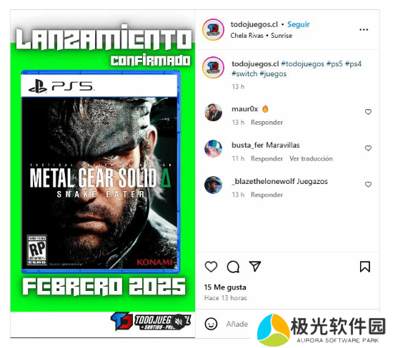 此外,一位来自智利的网友指出,智利的一家游戏商店已开始接受《合金装备 3 重制版》预订,并标明游戏计划于 2025 年 2 月发售。这家商店还在其 Instagram 频道上宣传了此消息。