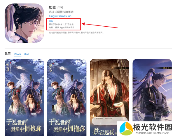 iOS的App Store上现可看到《如鸢》预计于2024年11月7日推出,大概率是和安卓同步上线,玩家可以期待一下。