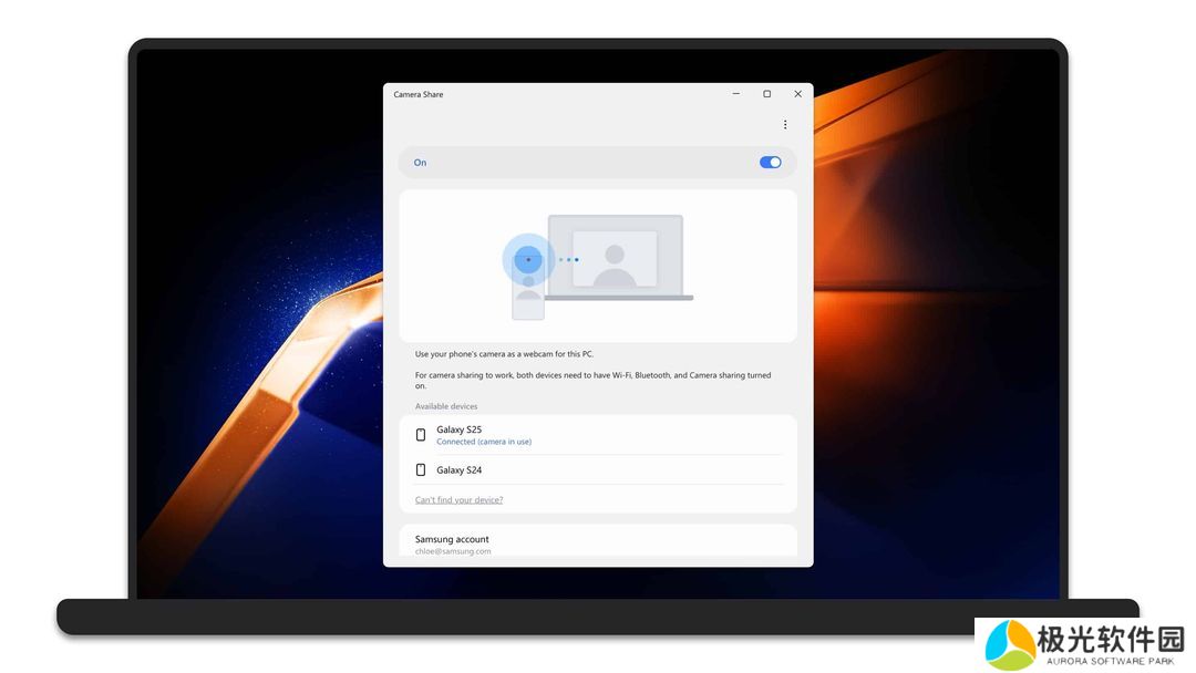 本站注: Camera Share 是一款让 Galaxy 手机作为 Galaxy Book 笔记本电脑摄像头的应用程序。目前该应用仍在开发中,从而增强 Galaxy 生态系统,实现三星产品间的无缝连接。