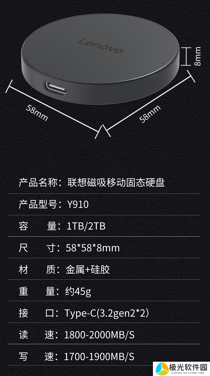 本站附联想 Y910 磁吸移动固态硬盘产品参数如下: