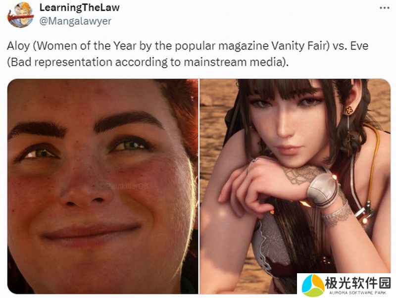 近日游戏博主Mangalawyer在推特上发文,吐槽《地平线》女主埃洛伊和《星刃》女主伊芙的待遇差别大。一个能登上《名利场》杂志封面,另一个却遭媒体恶评。