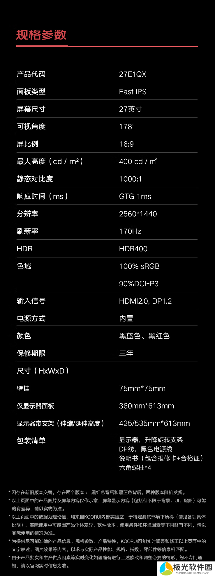 本站 1 月 31 日消息,科睿现已在京东上架一款型号为“27E1QX”的27英寸显示器,这款显示器主打“2K 170Hz”,定价为899元。