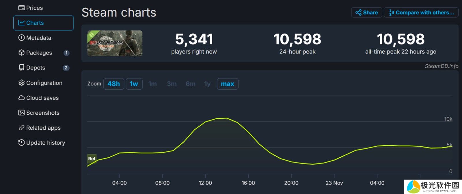 《真无双:起源》体验版已在11月22日9点在Steam平台开启,据SteamDB数据,《真三国无双:起源》体验版在Steam上的同时在线峰值只有10598人,当前在线玩家仅5341人。