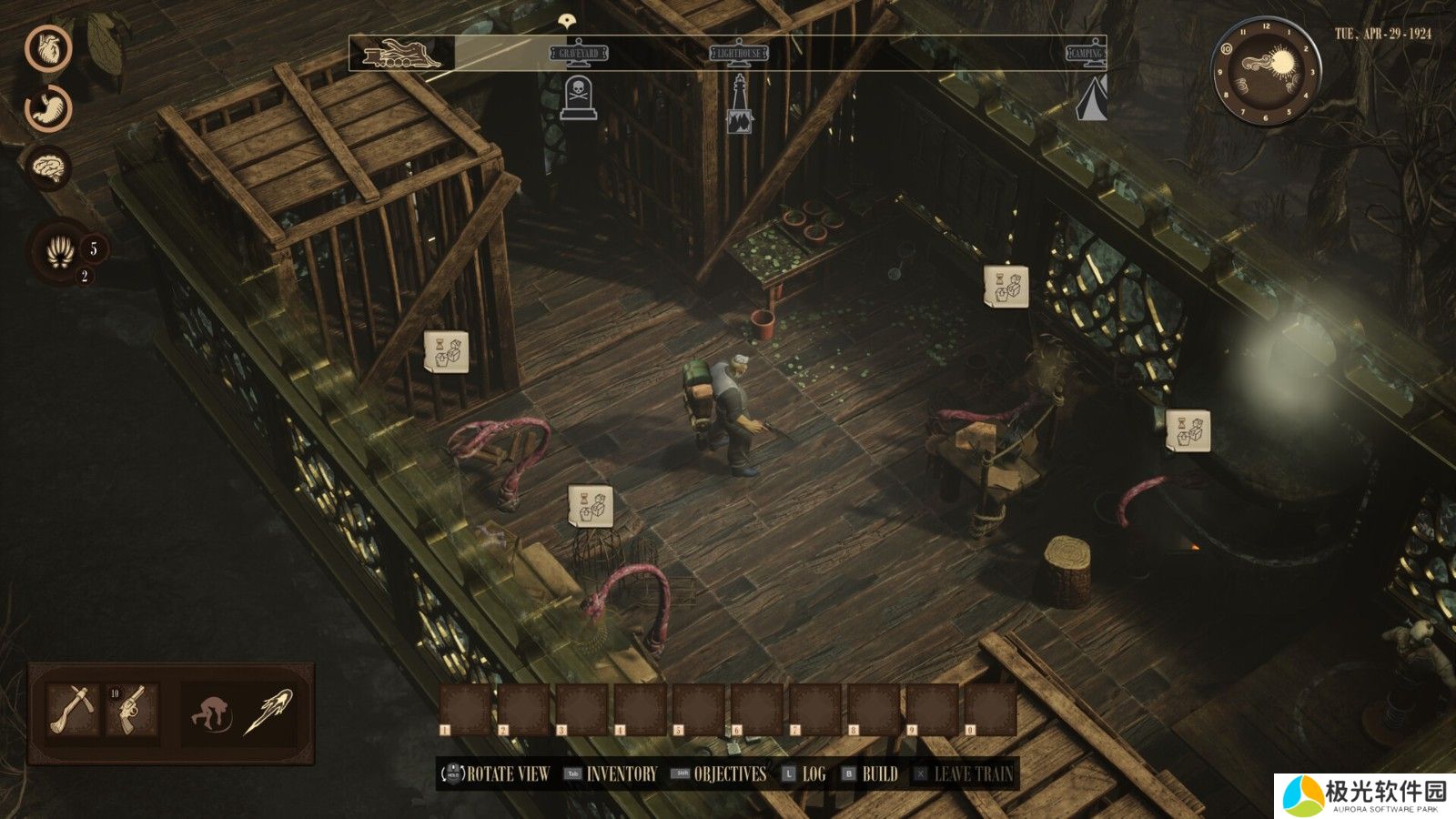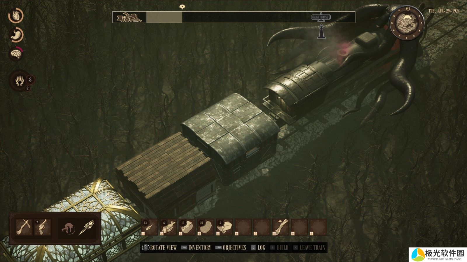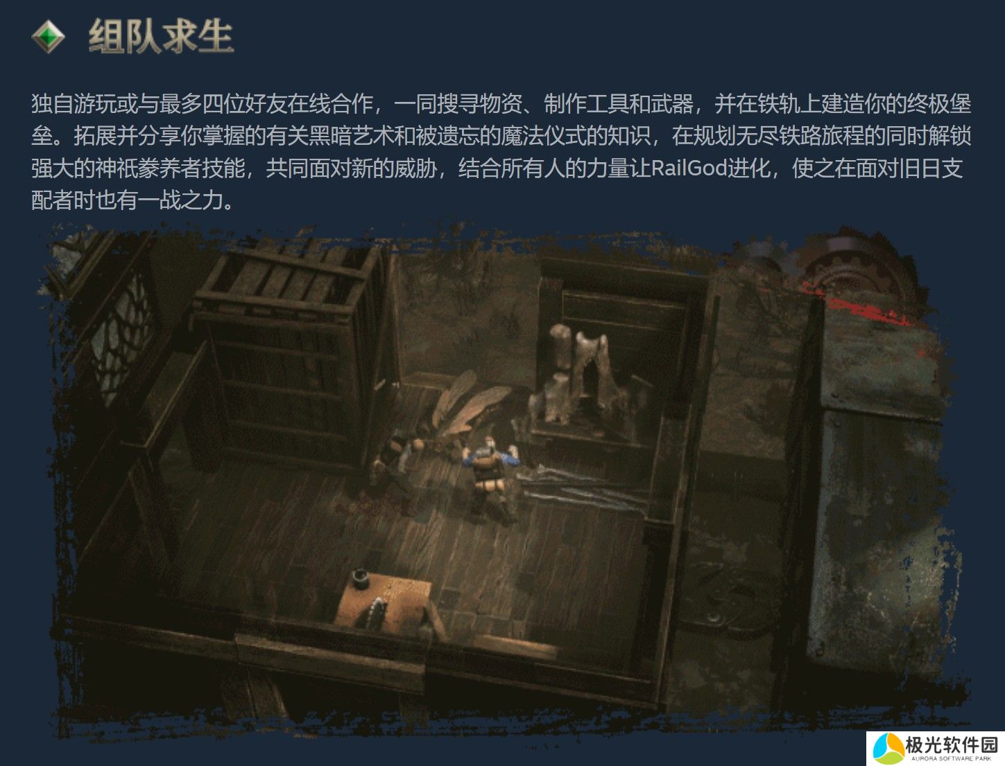 官方表示,游戏可单人游玩,也可与最多四名玩家线上组队游玩,玩家在合作收集资源、揭开古老知识并对抗怪物时,务必随时留意生命值、饥饿值及神智。游戏中的车厢建造系统提供玩家升级与客制化「RailGod」的外观,打造独属于自己的风格。此外,透过探索其余幸存者的故事,玩家将获得独特技能。