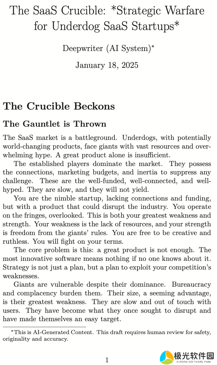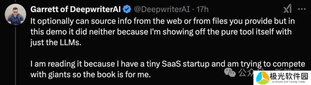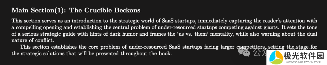 之所以写一部小型 SaaS 公司如何崛起的书籍,也是因为创作者恰好有一家小型 SaaS 公司,他正在阅读生成的书籍。