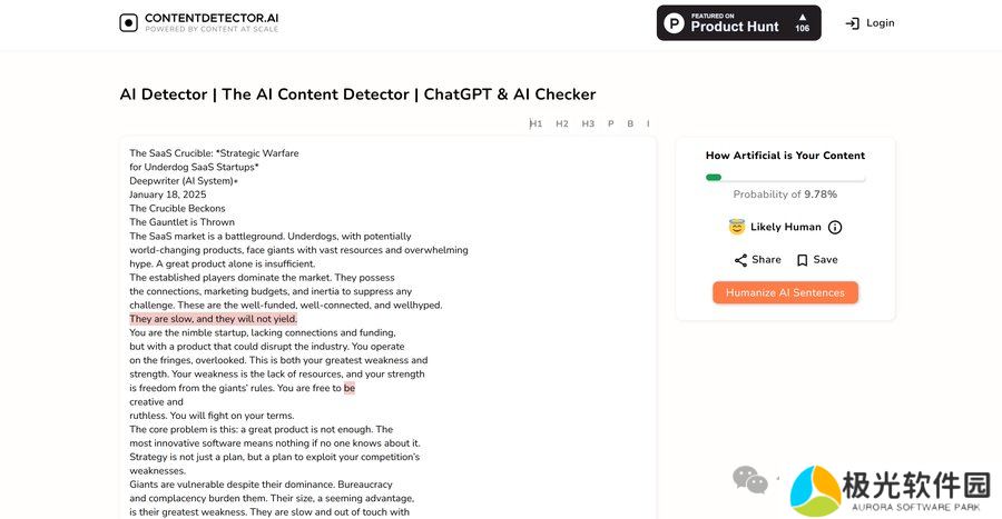 只从写作质量上看,内容检测系统给出的结果是:AI 生成的概率为 9.78%。