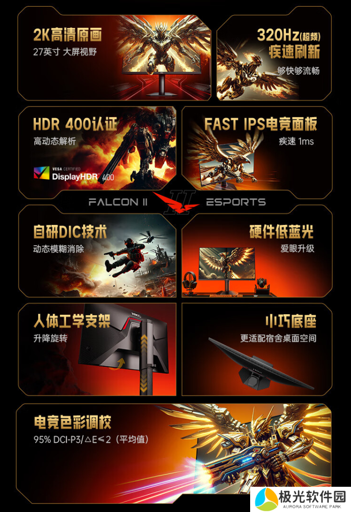 京东 HKC“猎鹰二代 G27H4Pro”显示器 2K 320Hz(超频)| 人体工学支架首发 1599 元直达链接
