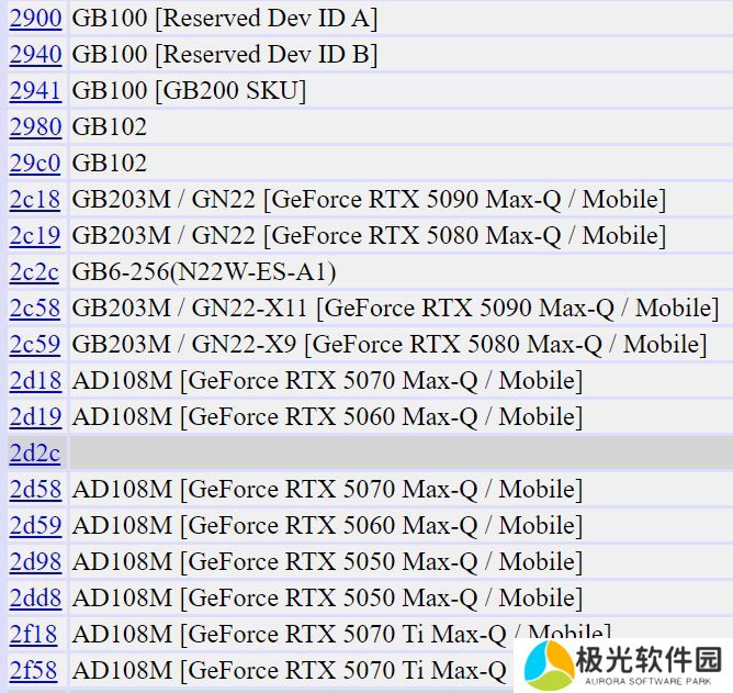 数据库信息显示,RTX 50 系列 Max-Q 版本 GPU 同时关联了 AD108M 和 GB206M 两种芯片。AD108M 芯片属于 Ada 架构,此前从未正式发布,定位低于 RTX 40 系列中的 AD107;而 GB206M 则属于 Blackwell 2.0 架构。这种双架构并存的现象引发了诸多疑问。