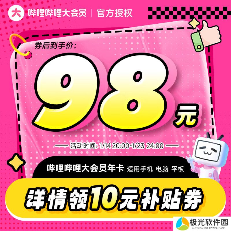 京东B站大会员 年卡不支持电视券后 98 元领 10 元券今日还可抽京东无门槛红包,至高 9999 元,下单直接当钱花哦:点此抽 3 次。