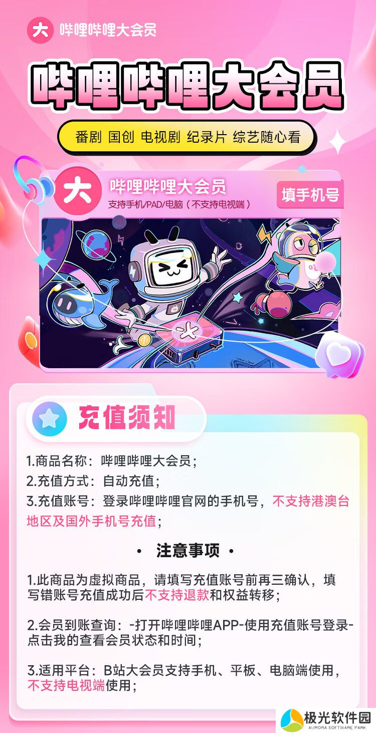 大会员适用平台:B站大会员支持手机 / 平板 / 电脑使用,不支持电视端使用。