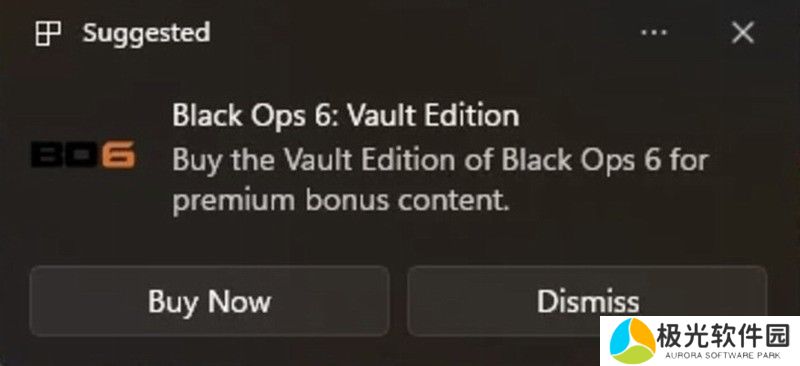 微软最近看来是在Windows 11系统通知中推荐《使命召唤:黑色行动6》金库版,并引导用户前往微软应用商店购买。