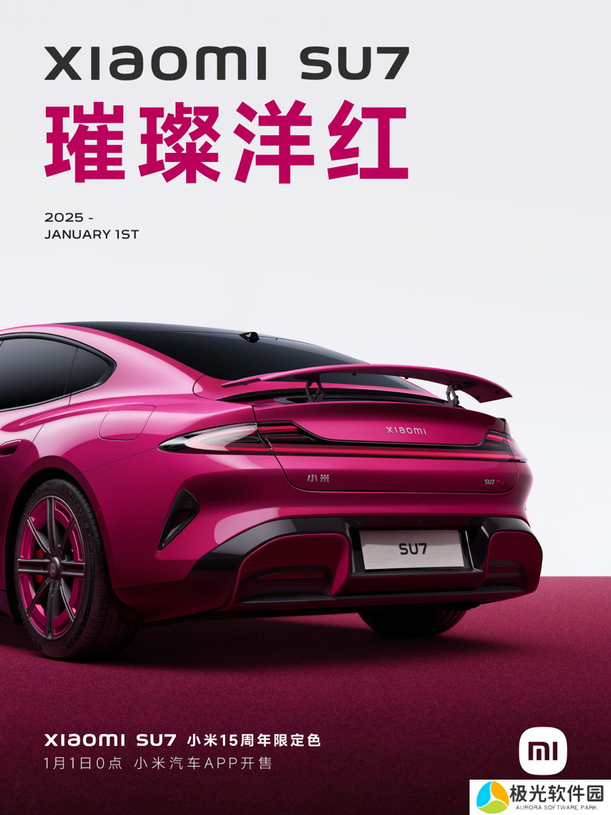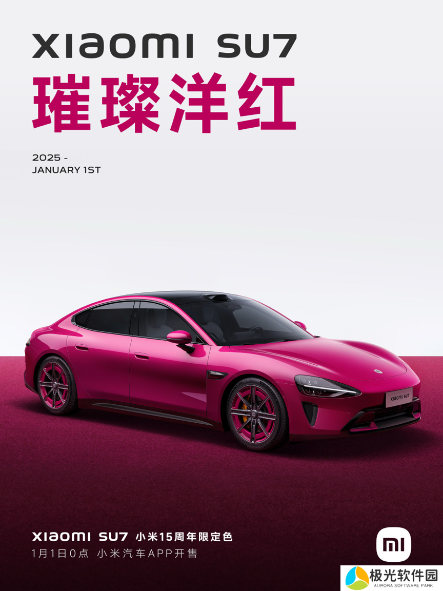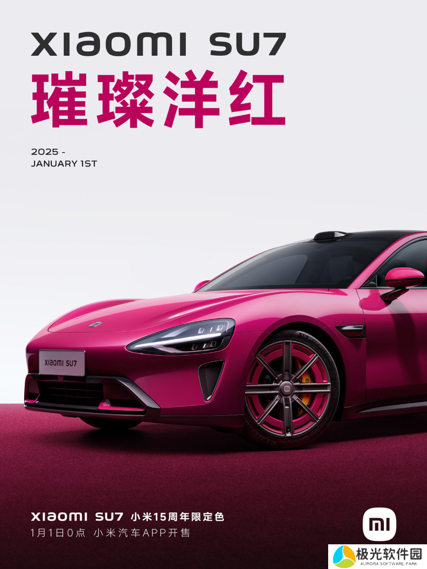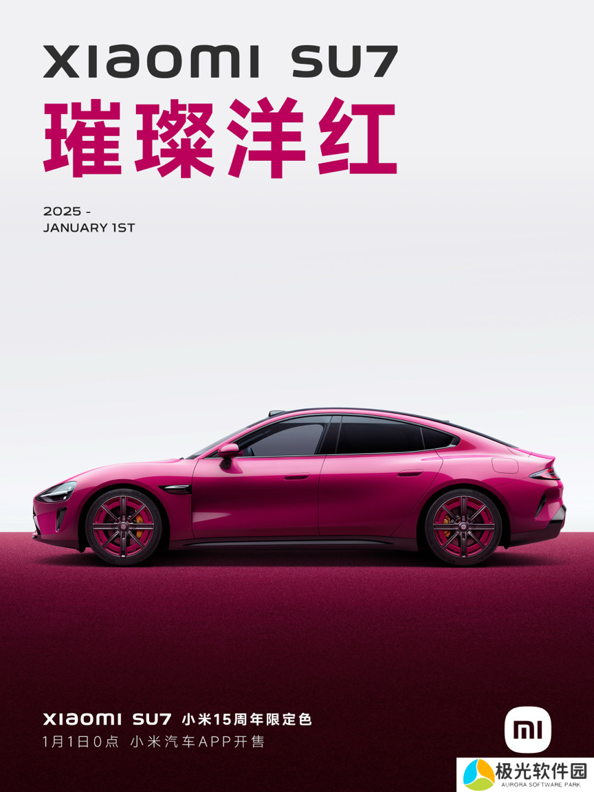 感谢本站网友 風見暉一、软媒新友2314428、Autumn_Dream 的线索投递! 本站 12 月 31 日消息,小米 SU7 汽车小米 15 周年限定色今日正式亮相,命名为“璀璨洋红”,将于 1 月 1 日 0 点在小米汽车 App 开售。