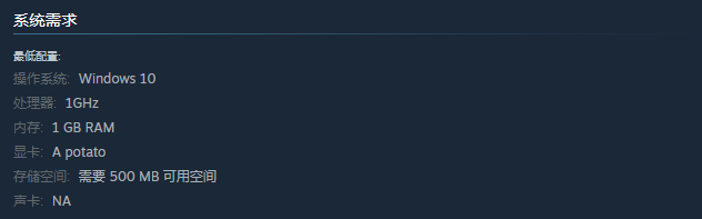《Innkeep》是一款能让您沉浸其中、又包含恶趣味反转元素的职业模拟游戏,而游戏的画面表现非常不错,需要的配置要求也不算高,CPU最低只需要1GHz的英特尔或者AMD处理器。