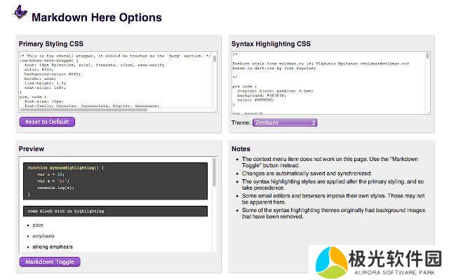 6、安装完成后,我们首先需要配置Markdown Here Option,自定义一些 CSS: