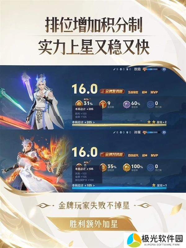 在排位赛中,如果获胜且拿到金牌,将会额外获得一颗星;即使比赛失败,但依然获得金牌,则可保星不掉星。