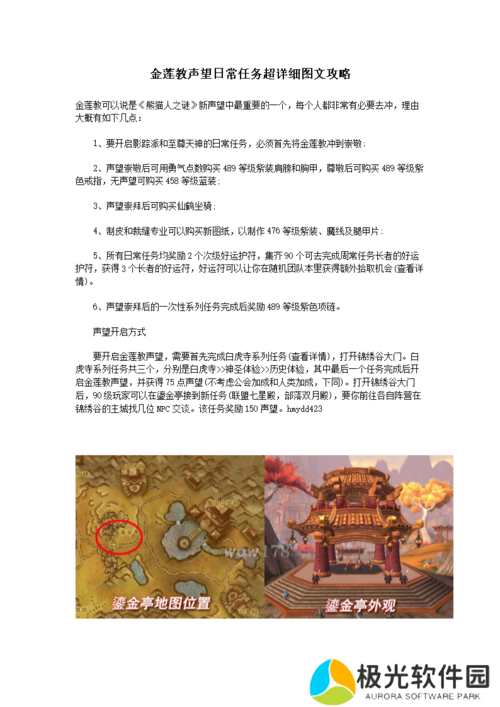 金莲教是《魔兽世界》熊猫人之谜版本中的一个重要声望阵营,其声望奖励丰富,以下是一些关于金莲教声望奖励及攻略的详细介绍: