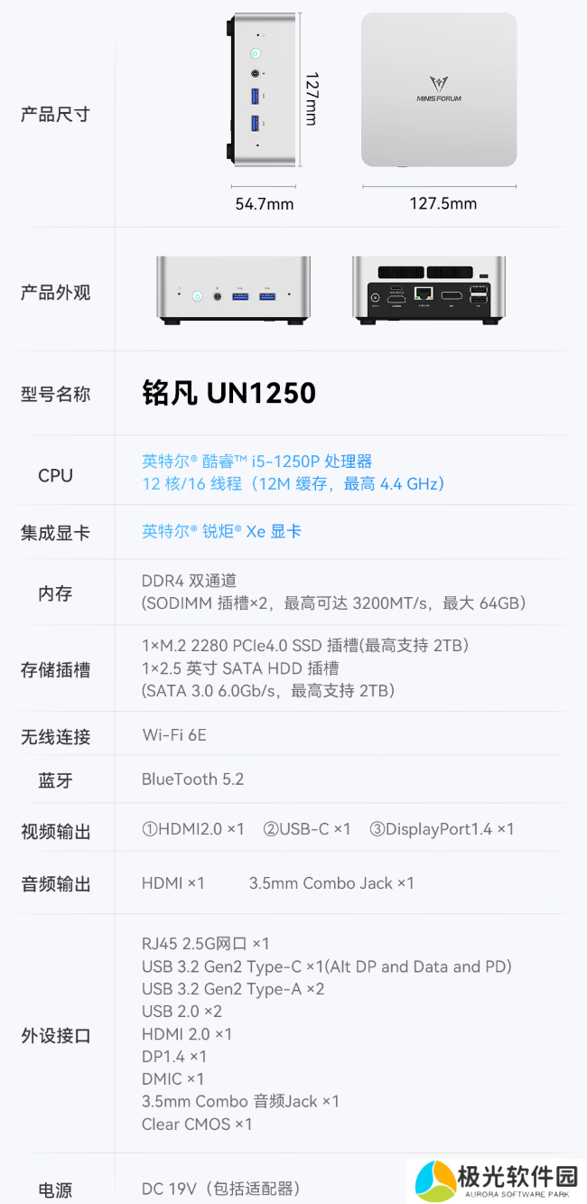 京东铭凡 UN1250 迷你主机 i5-1250P 处理器 | 满载状态风扇噪音 43dB1599 元起领 300 元券