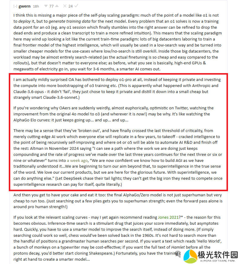 美国 AI 作家和研究员 Gwern Branwen,则认为 Ryan Kidd 遗漏了一个重要方面:像 o1 这样的模型的主要目的之一不是将其部署,而是生成下一个模型的训练数据。