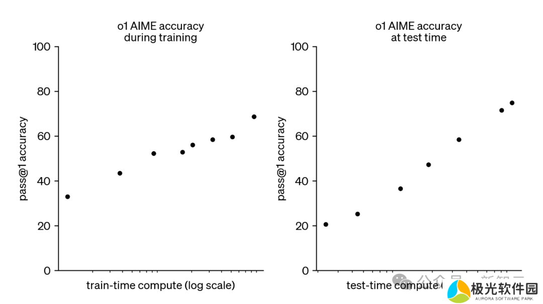 如下面所示,o1 的 AIME 准确率,随着测试时计算资源的对数增加而呈恒定增长。