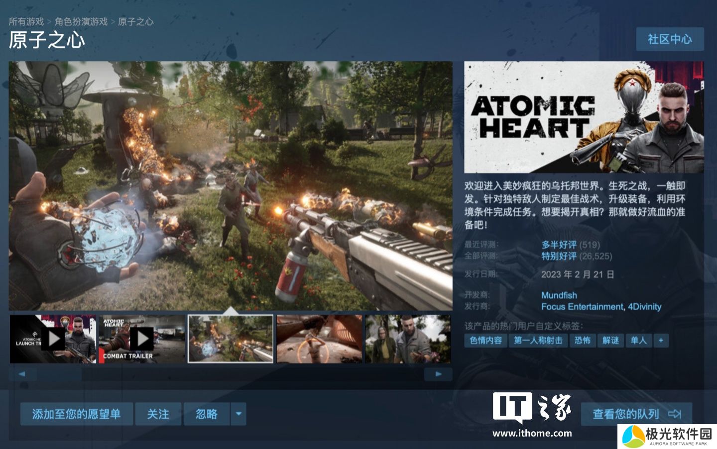 本站此前报道,科幻动作游戏《原子之心》于 2023 年 2 月 21 日发售,登陆PC(Steam)、PS4|5、Xbox One、Xbox Series X | S,首发加入 XGP,Steam 国区定价 239/339/399 元。