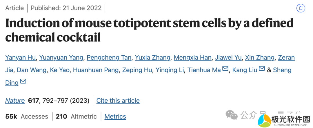 丁胜教授团队首次以化学小分子组合体外定向诱导小鼠全能干细胞并稳定培养,成果在 2022 年登上 Nature。