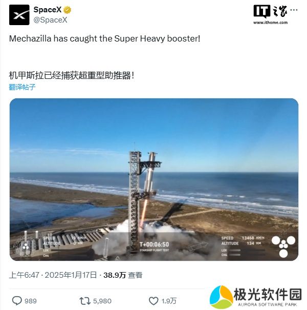 本站 1 月 17 日消息,北京时间 06:37,SpaceX 超重型助推器/ 星舰 V2 组合体点火升空,开启其第七次试飞任务。
