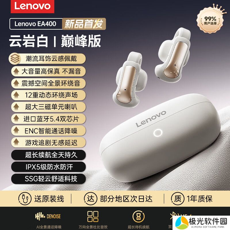 本站 1 月 14 日消息,联想现已在京东上架一款型号为 EA400 的“G 型耳夹设计骨传导耳机”,这款耳机主打“IPX5防水防汗、空间音频”,定价为199元。