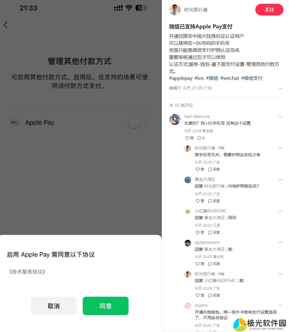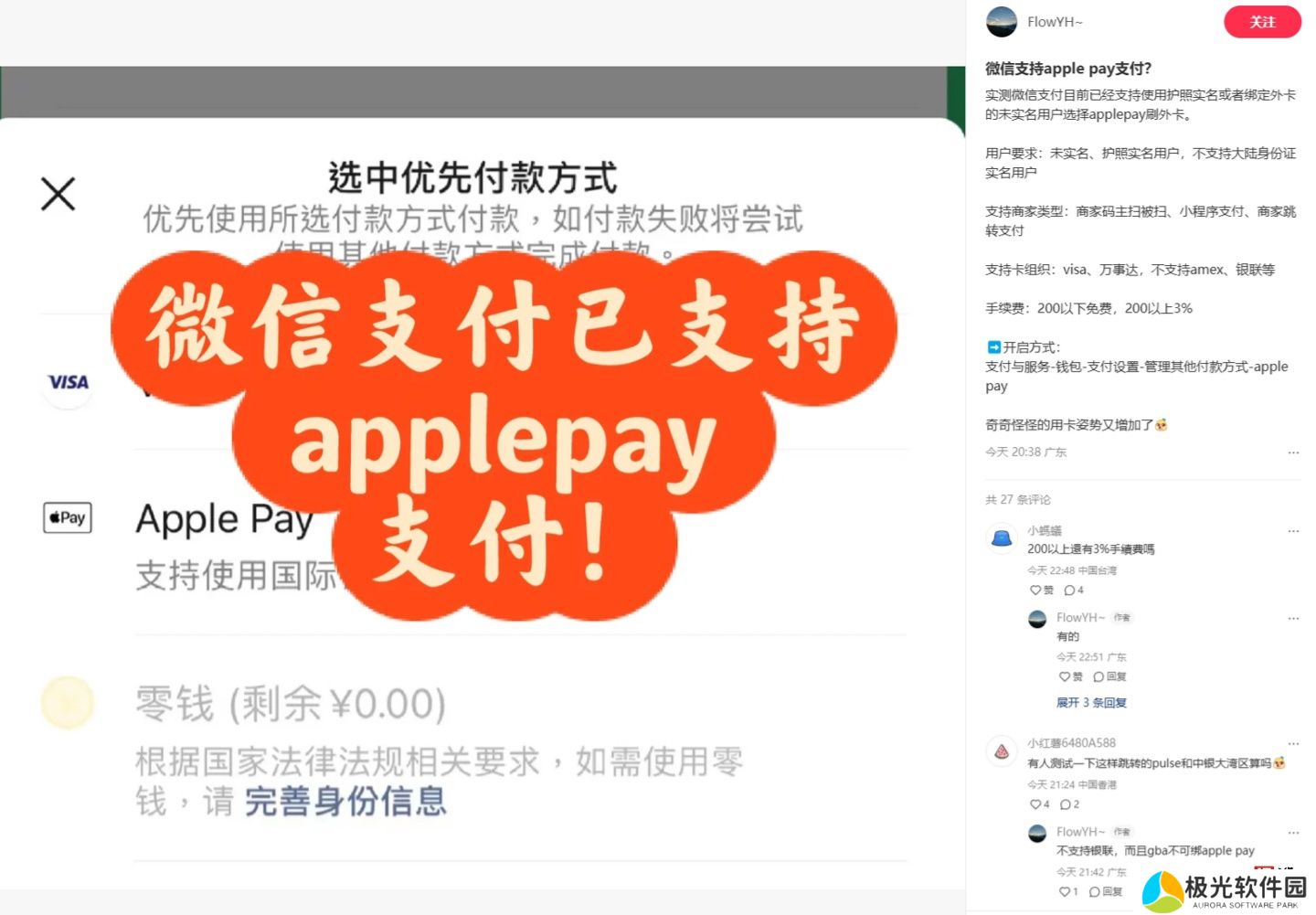 本站 1 月 21 日消息,综合小红书多名用户反馈,目前微信支付悄悄支持了海外苹果Apple Pay支付功能,关于“如何开通相关功能”,当前各种说法众说纷纭,有用户称微信需要绑定非内地(非 +86)手机号码,同时认证护照后才能使用,但也有用户称只需要认证护照后即可使用。