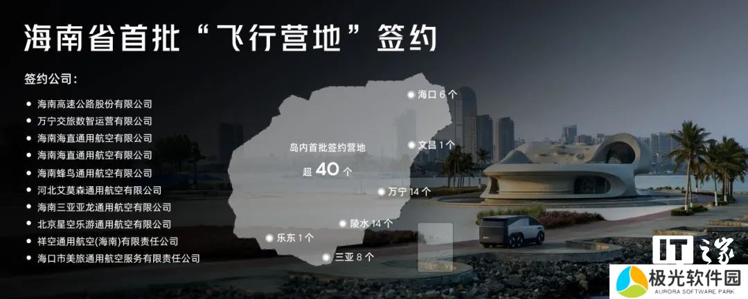 1.前期准备阶段:小鹏汇天与海南省内超 40 个飞行营地正式签署合作协议,覆盖海口、三亚、儋州、万宁、陵水、保亭县、乐东县多地,涵盖了海南省绝大部分知名景点。